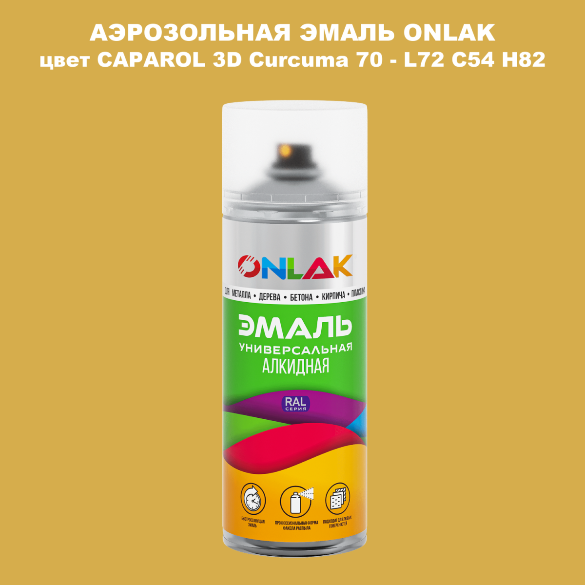 Аэрозольная краска ONLAK, цвет CAPAROL 3D Curcuma 70 - L72 C54 H82 спрей 520мл