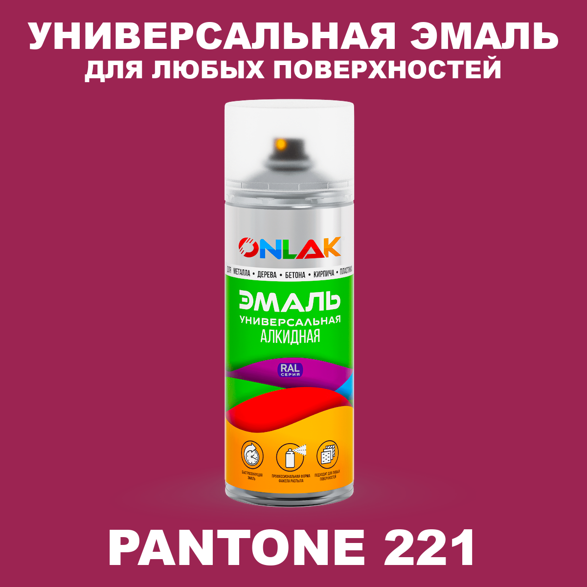 | Элемент каталога | Аэрозольная краска ONLAK, цвет PANTONE 221 C, спрей 520мл | |