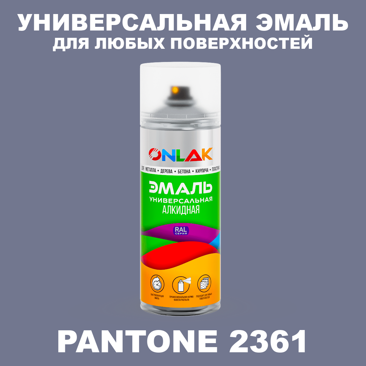 | Элемент каталога | Аэрозольная краска ONLAK, цвет PANTONE 2361 C, спрей 520мл | |