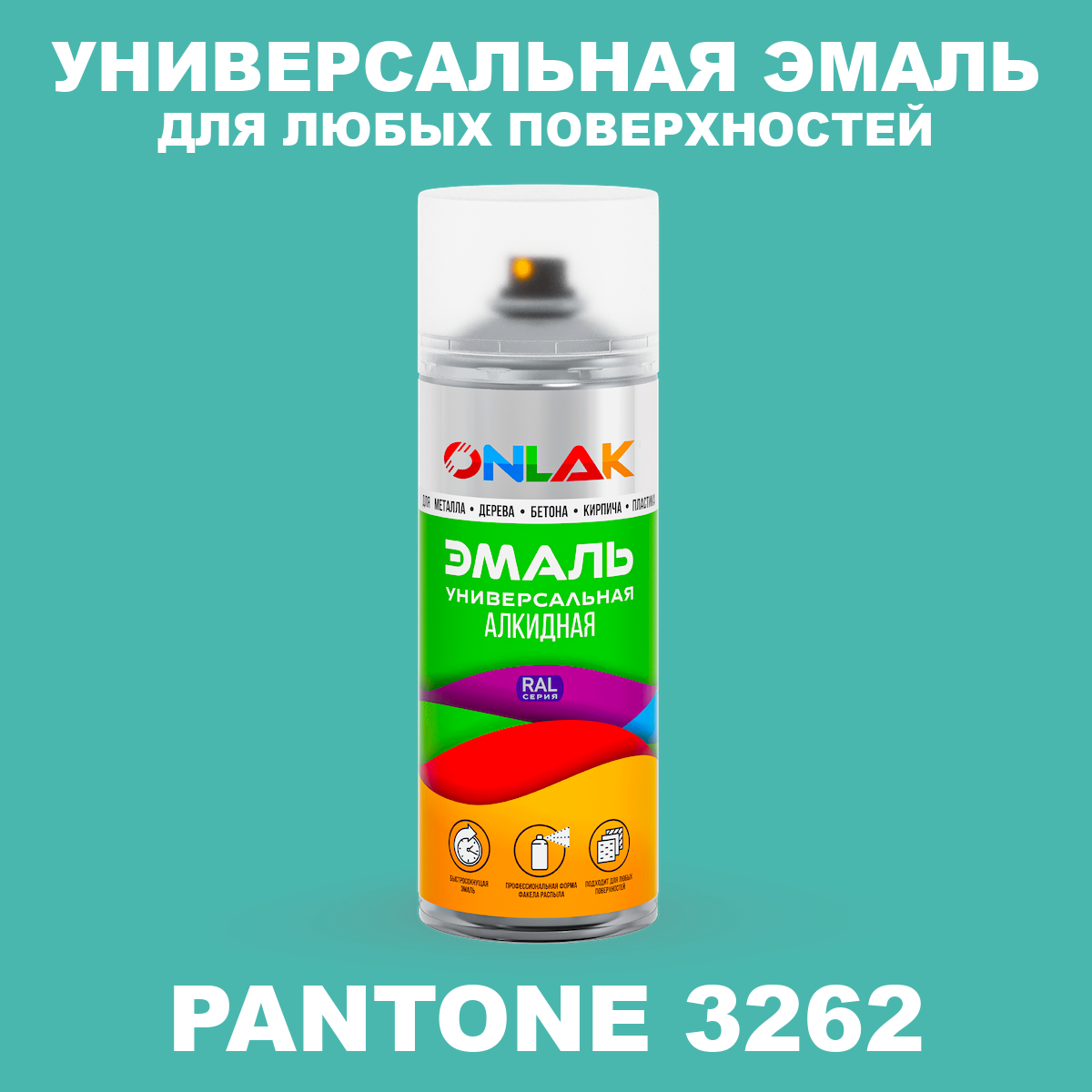 | Элемент каталога | Аэрозольная краска ONLAK, цвет PANTONE 3262 C, спрей 520мл | |