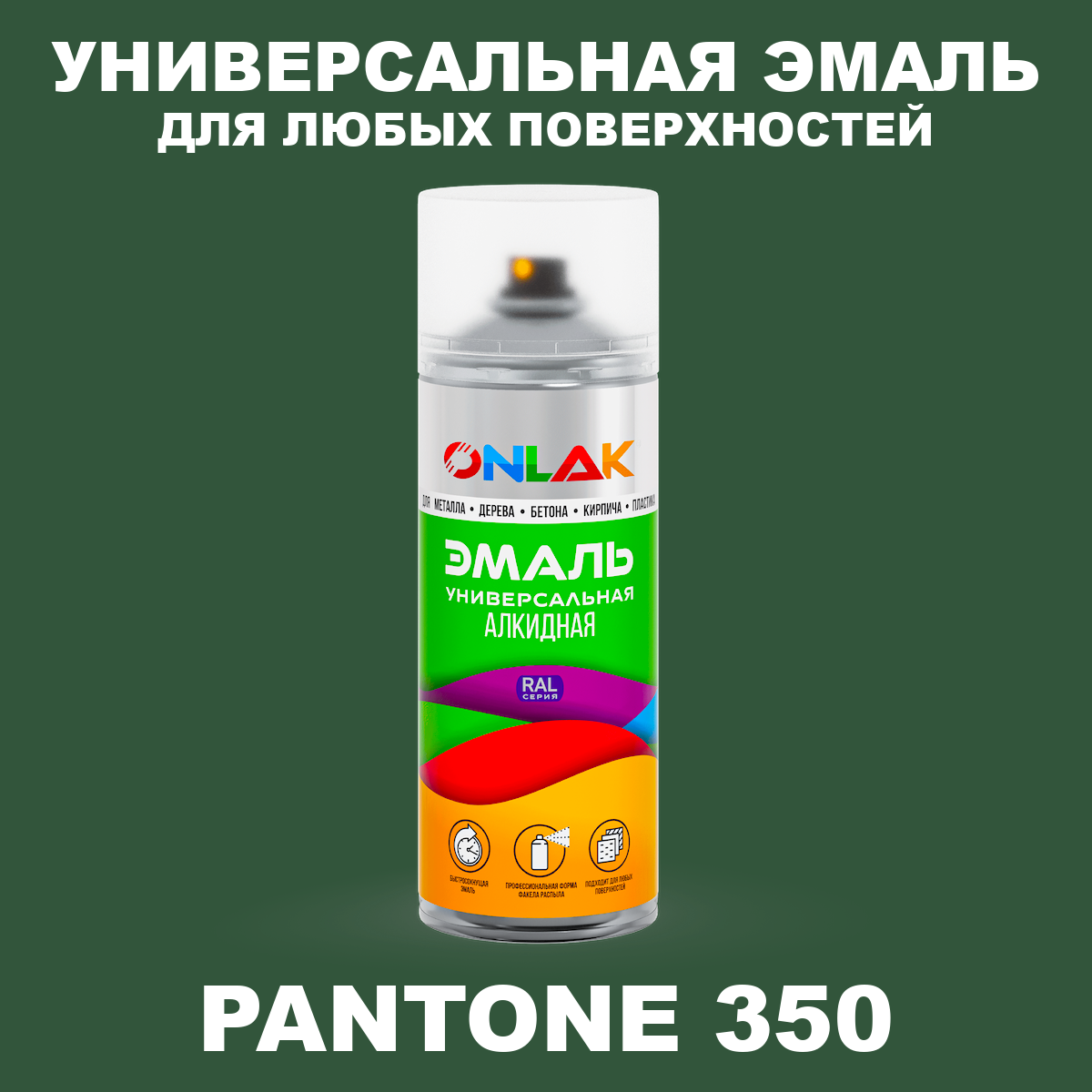 | Элемент каталога | Аэрозольная краска ONLAK, цвет PANTONE 350 C, спрей 520мл | |
