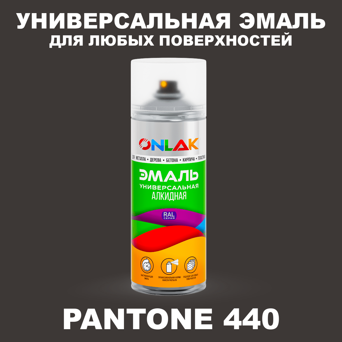 | Элемент каталога | Аэрозольная краска ONLAK, цвет PANTONE 440 C, спрей 520мл | |
