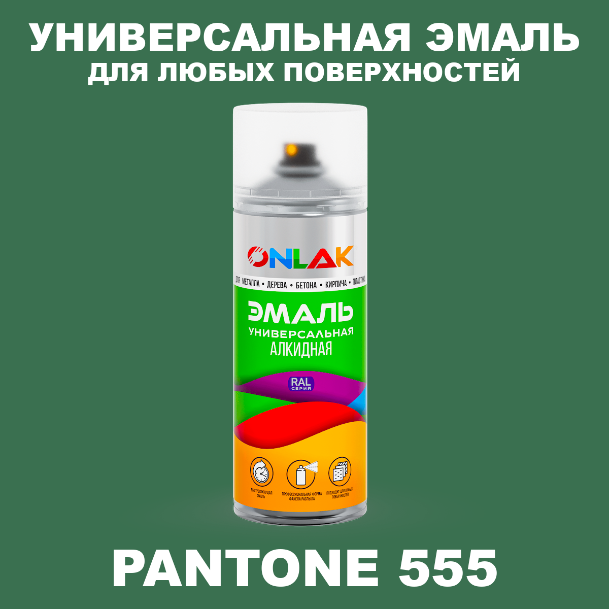 | Элемент каталога | Аэрозольная краска ONLAK, цвет PANTONE 555 C, спрей 520мл | |