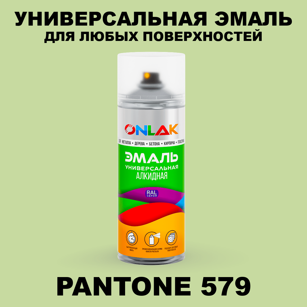 | Элемент каталога | Аэрозольная краска ONLAK, цвет PANTONE 579 C, спрей 520мл | |