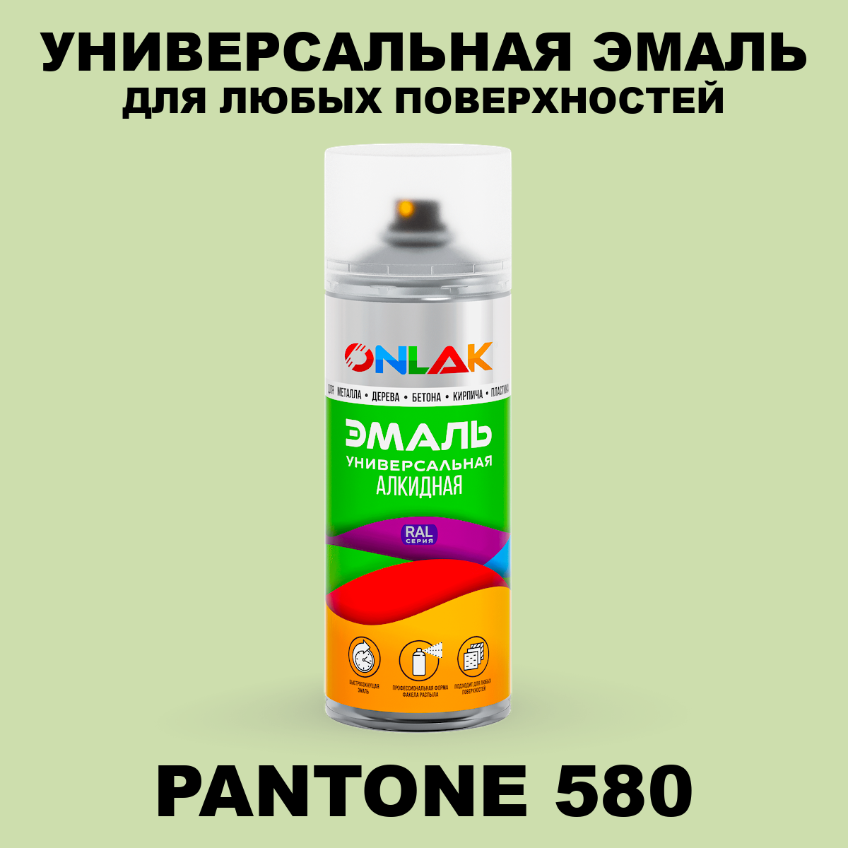 | Элемент каталога | Аэрозольная краска ONLAK, цвет PANTONE 580 C, спрей 520мл | |