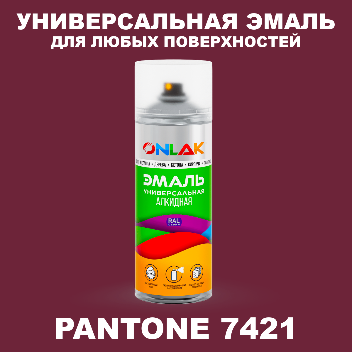 | Элемент каталога | Аэрозольная краска ONLAK, цвет PANTONE 7421 C, спрей 520мл | |
