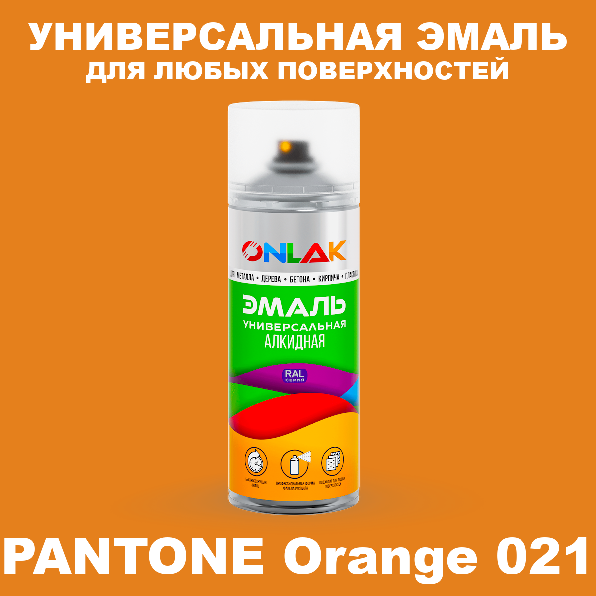 | Элемент каталога | Аэрозольная краска ONLAK, цвет PANTONE Orange 021 C, спрей 520мл | |