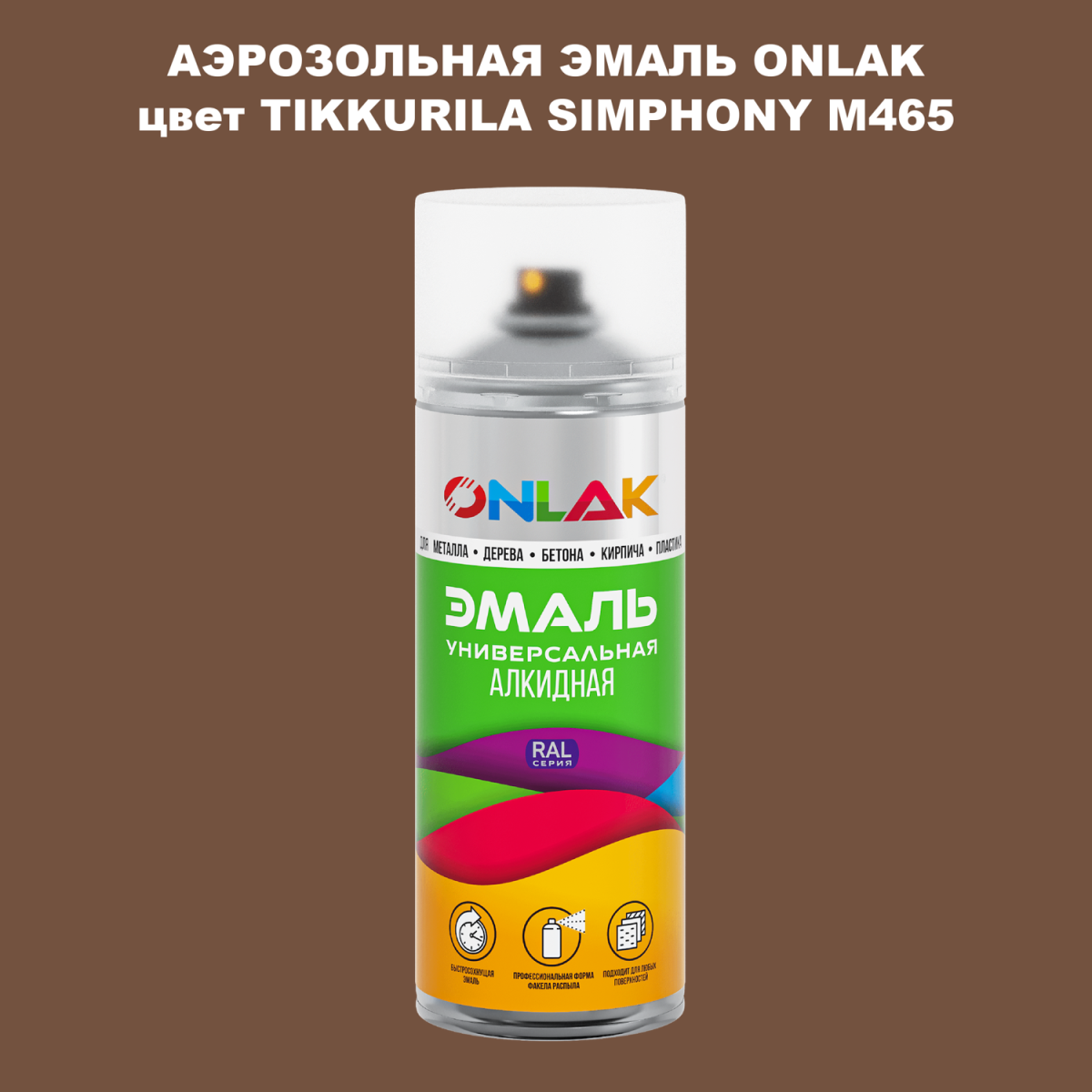 Аэрозольная алкидная краска ONLAK колерована по каталогу цветов TIKKURILA SYMPHONY и служит для быстрого и равномерного окрашивания металлов, дерева, бетона, пластика, стекла.