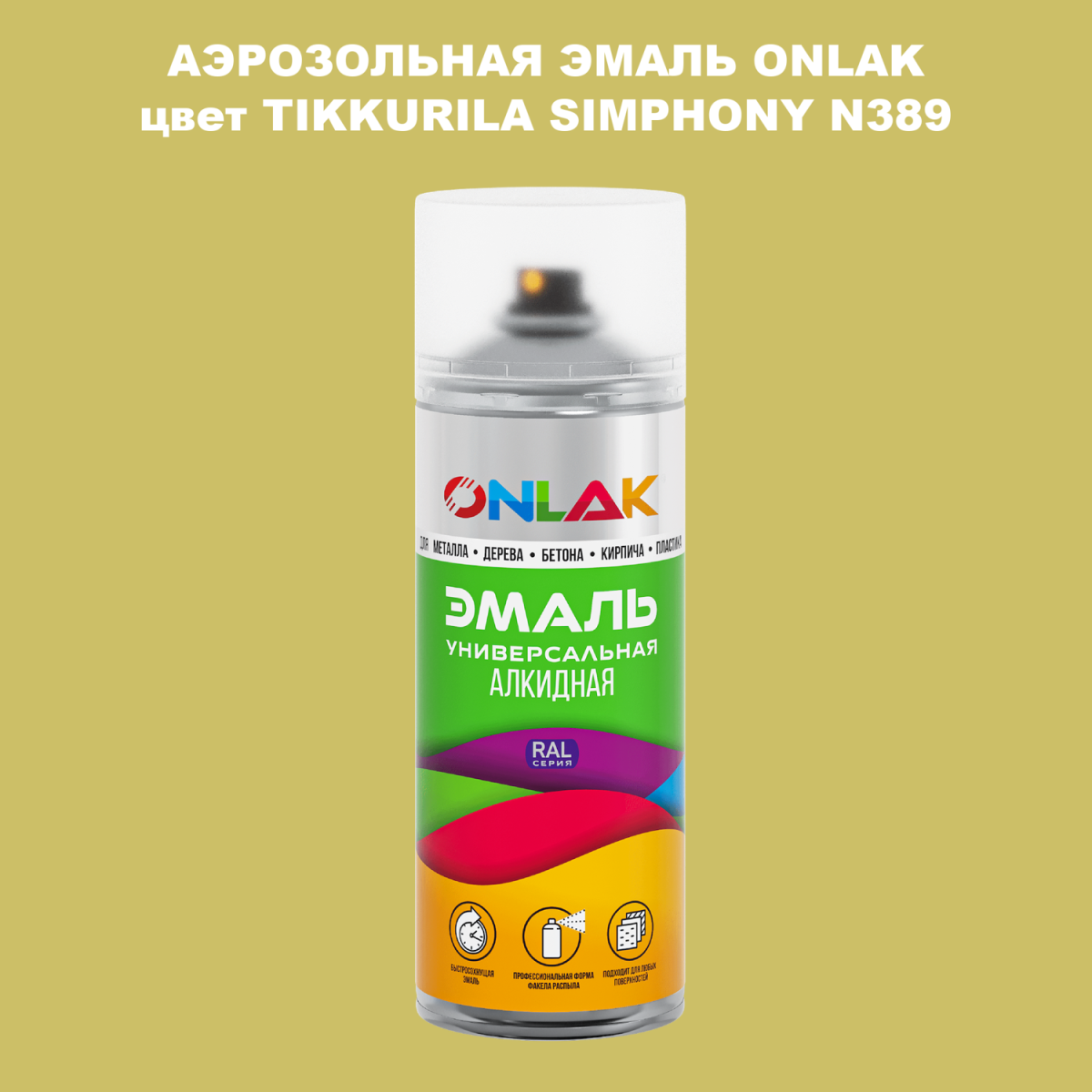 Аэрозольная алкидная краска ONLAK колерована по каталогу цветов TIKKURILA SYMPHONY и служит для быстрого и равномерного окрашивания металлов, дерева, бетона, пластика, стекла.