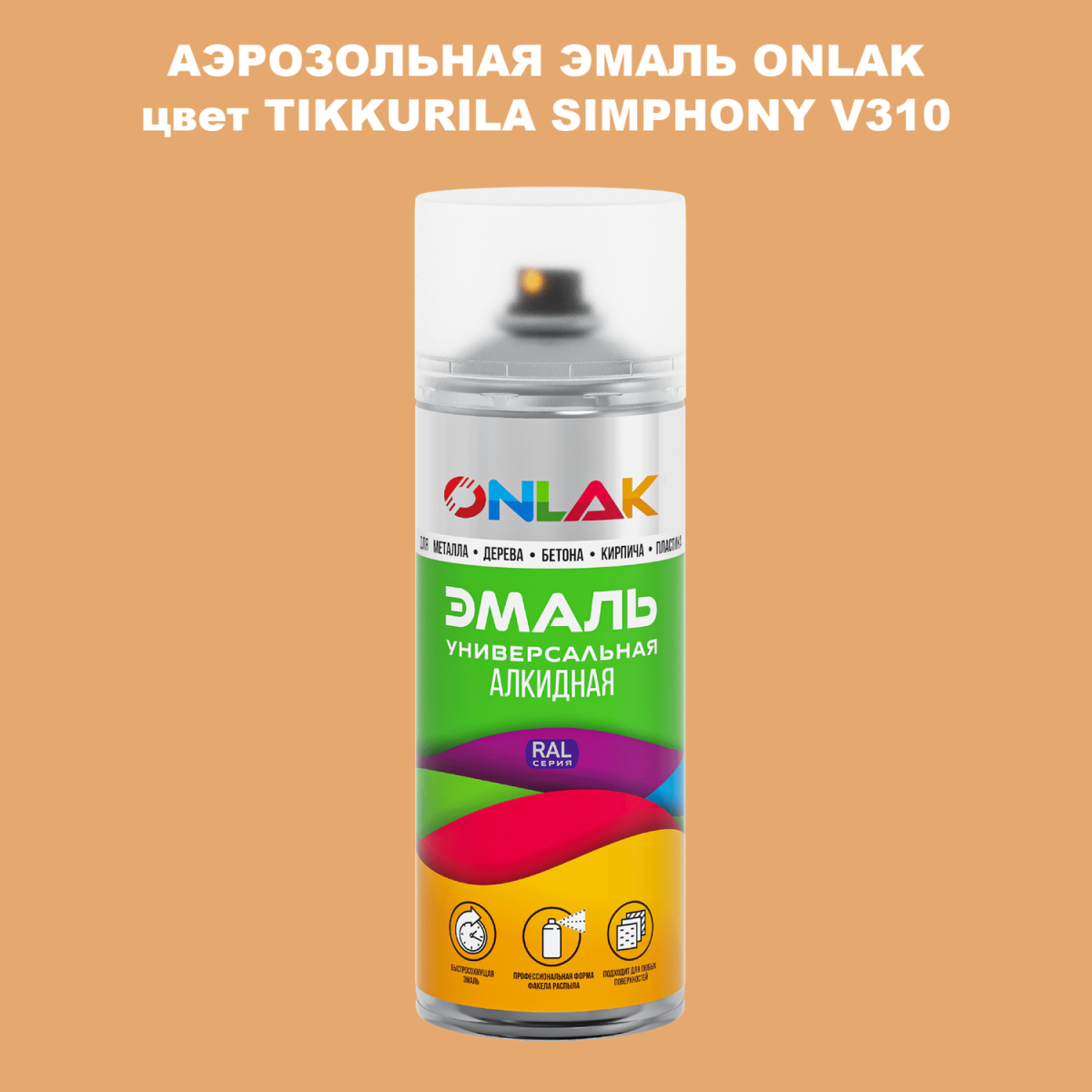 Аэрозольная алкидная краска ONLAK колерована по каталогу цветов TIKKURILA SYMPHONY и служит для быстрого и равномерного окрашивания металлов, дерева, бетона, пластика, стекла.