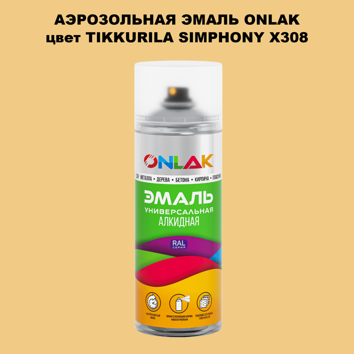 Аэрозольная алкидная краска ONLAK колерована по каталогу цветов TIKKURILA SYMPHONY и служит для быстрого и равномерного окрашивания металлов, дерева, бетона, пластика, стекла.