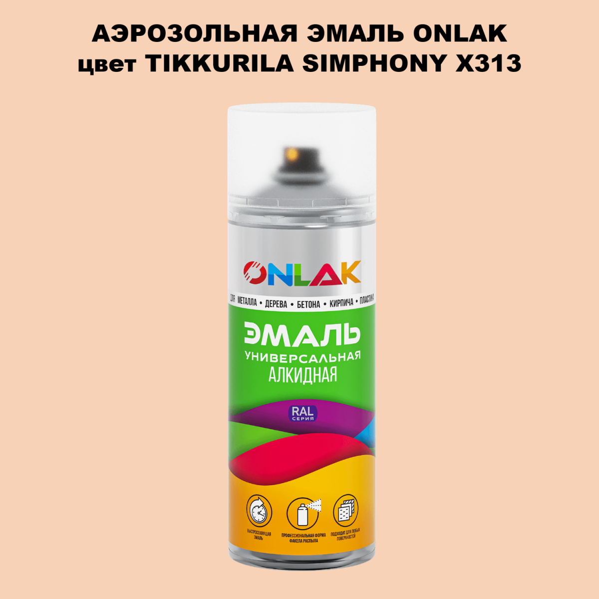 Аэрозольная алкидная краска ONLAK колерована по каталогу цветов TIKKURILA SYMPHONY и служит для быстрого и равномерного окрашивания металлов, дерева, бетона, пластика, стекла.