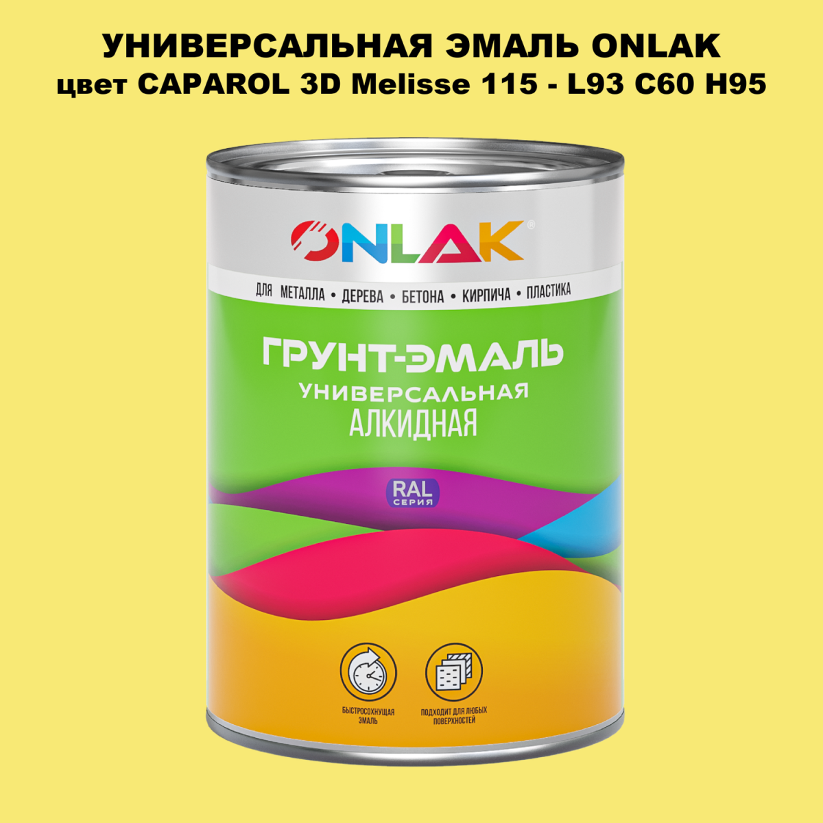 Универсальная алкидная эмаль ONLAK, колерованая по каталогу цветов CAPAROL 3D, служит для окрашивания поверхностей, подвергающихся атмосферным воздействиям.