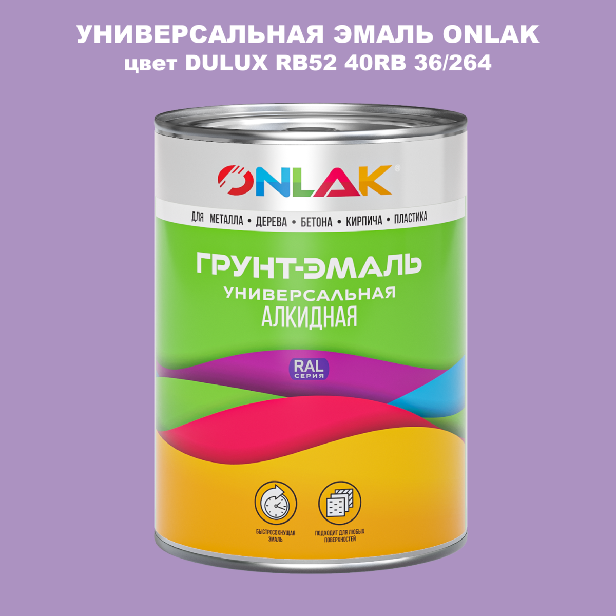 Универсальная алкидная эмаль ONLAK, колерованая по каталогу цветов DULUX TRADE, служит для окрашивания поверхностей, подвергающихся атмосферным воздействиям.