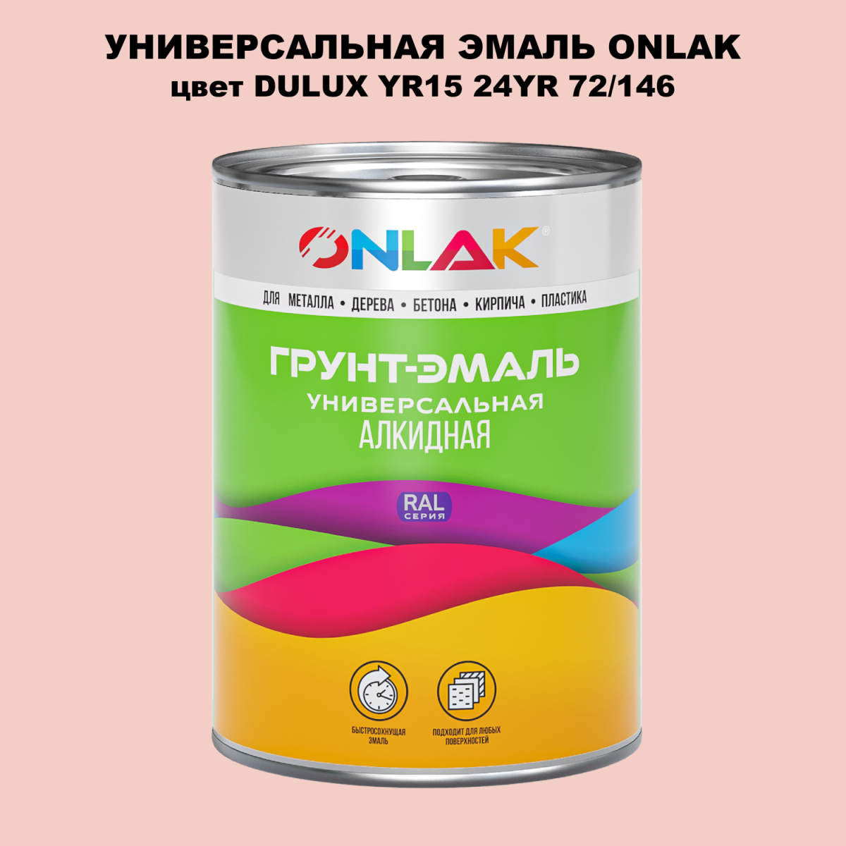 Универсальная алкидная эмаль ONLAK, колерованая по каталогу цветов DULUX TRADE, служит для окрашивания поверхностей, подвергающихся атмосферным воздействиям.