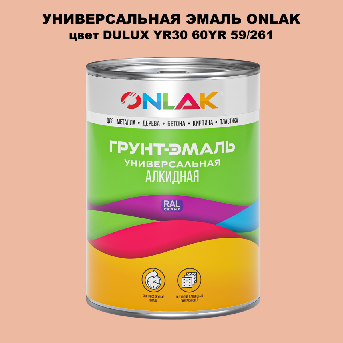 Универсальная алкидная эмаль ONLAK, колерованая по каталогу цветов DULUX TRADE, служит для окрашивания поверхностей, подвергающихся атмосферным воздействиям.