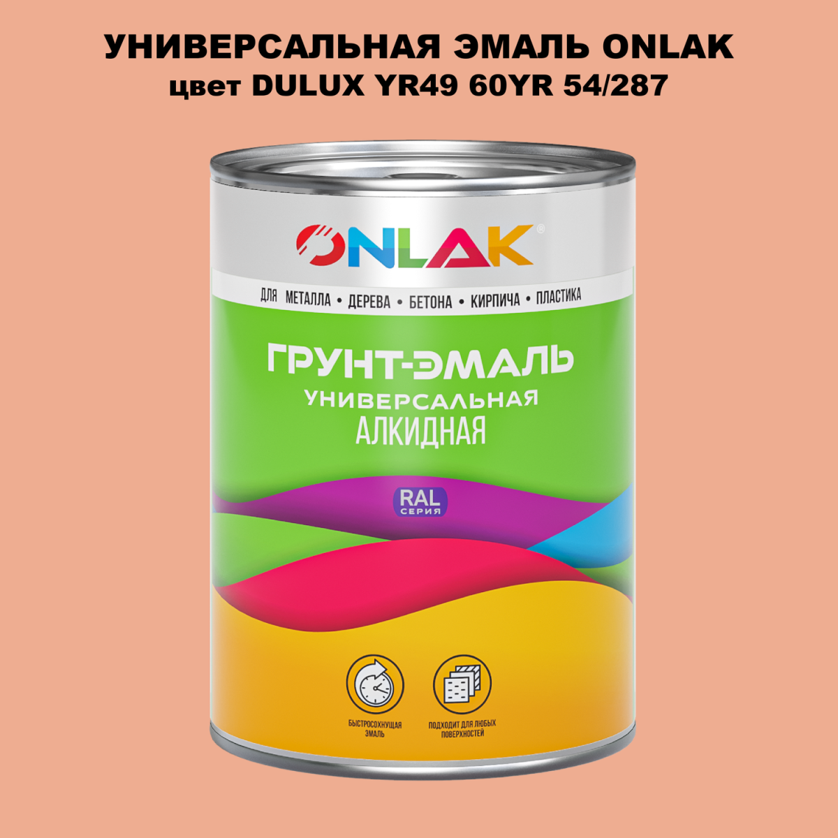 Универсальная алкидная эмаль ONLAK, колерованая по каталогу цветов DULUX TRADE, служит для окрашивания поверхностей, подвергающихся атмосферным воздействиям.