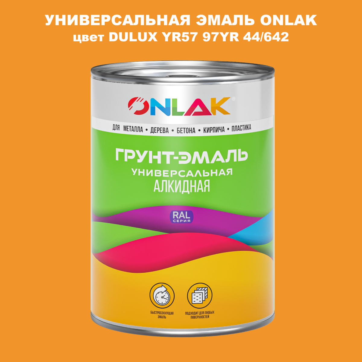 Универсальная алкидная эмаль ONLAK, колерованая по каталогу цветов DULUX TRADE, служит для окрашивания поверхностей, подвергающихся атмосферным воздействиям.