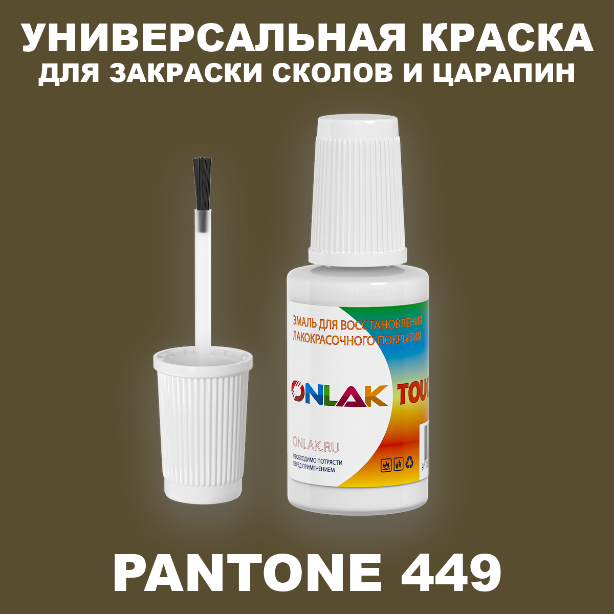 | С этим товаром покупают | Аэрозольная краска ONLAK, цвет PANTONE 449 C, спрей 520мл / Краска цвет PANTONE 449 C / PANTONE 449 C МАРКЕР С КРАСКОЙ | |
