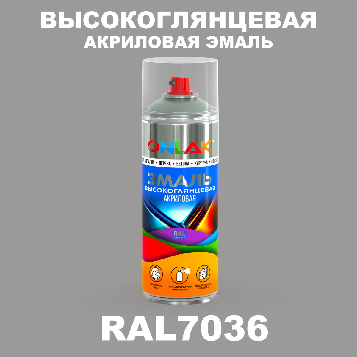 | Элемент каталога | Высокоглянцевая акриловая эмаль ONLAK, цвет RAL7036, спрей 520мл | |