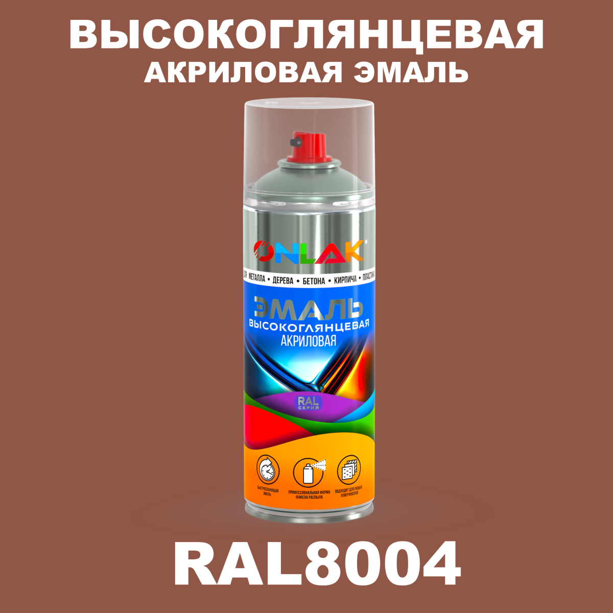 | Элемент каталога | Высокоглянцевая акриловая эмаль ONLAK, цвет RAL8004, спрей 520мл | |